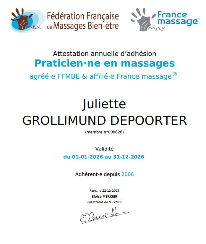 La marque France massage® garantit les services d’un professionnel de confiance, formé selon les normes de la FFMBE.